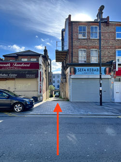 ![]() Please walk down this passageway to the brick wall. | ![]() Please turn left when you get to the brick wall/fencing. | ![]() Walk down this path and my studio is located here on ground floor. |